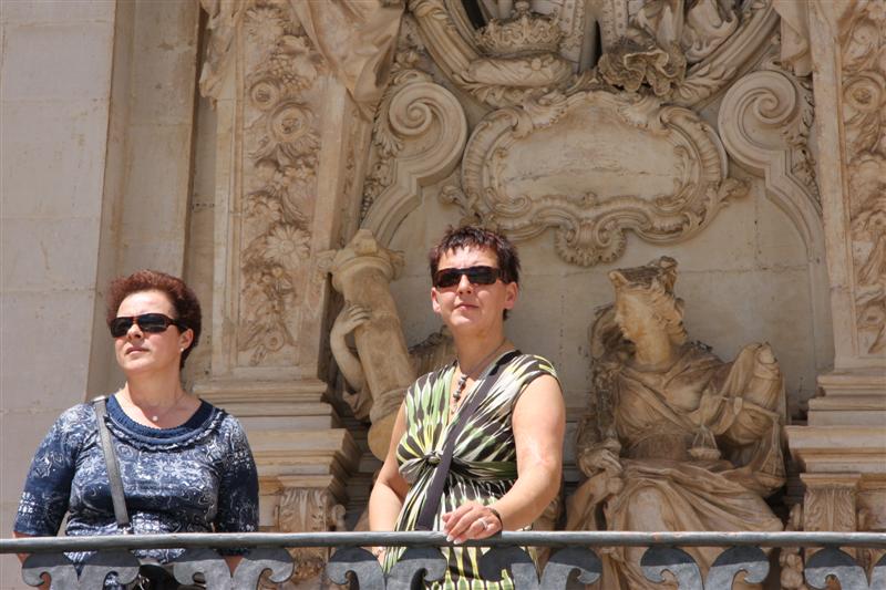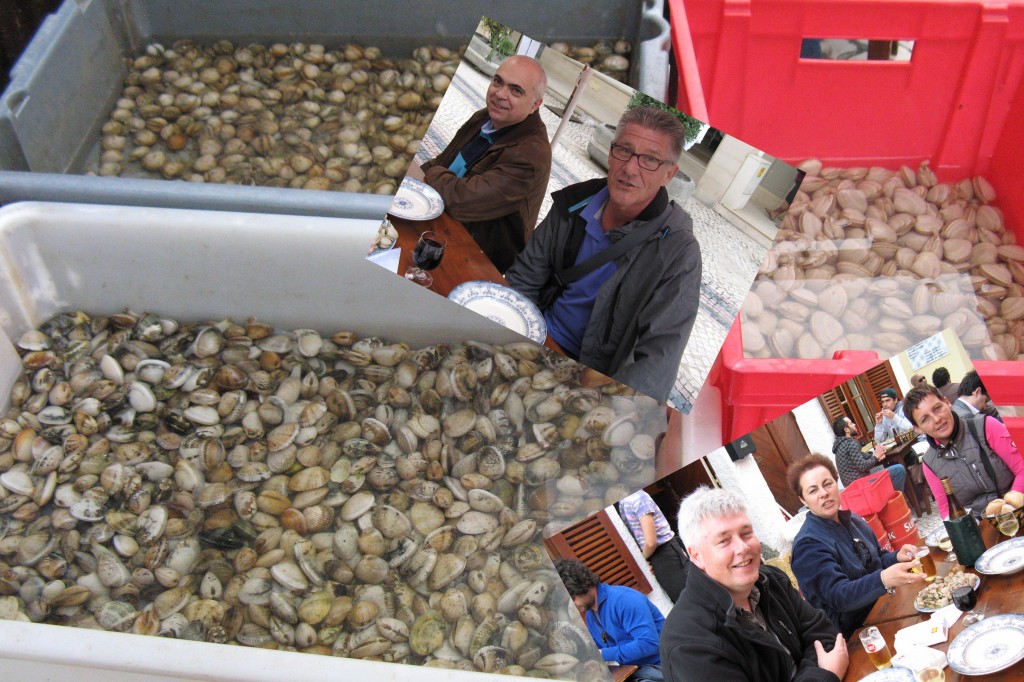 ; mooie gebouwen en allemaal gerestaureerd en met name wat ons opgevallen is, dat deze stad erg schoon is. De kerk Santa Lucia is een mooie kerk; met veel glas in lood en in tegenstelling tot andere kerken die wij gezien hebben, is deze kerk erg licht van binnen , mede door een grote koepel in het midden van de kerk. Verder is deze kerk niet pompeus en erg toegankelijk. ‘middags hebben de mannen lekker op een terrasje gezeten en aan de bier gezeten terwijl de vrouwen zijn gaan shoppen. Na een aantal winkels te hebben bezocht kwamen we tot de conclusie dat er niets te shoppen was. Maria zag opeens een winkel waar ze typische folklore klederdracht verkochten. Nadat zij zich helemaal in klederdracht uit Minho heeft gehesen, en deze kleding heeft gekocht zijn we bij de mannen op het terras gaan zitten en hebben we een lekker biertje gedronken. ’s Avonds was het nogal moeizaam om een geschikte restaurant te vinden. Uiteindelijk zijn we in een piepklein restaurantje terechtgekomen via een steegje en hebben heerlijk gegeten en als toetje hebben we heerlijk apfelstrudel.