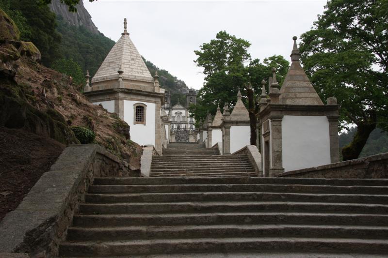 Vanuit Castro Laboreiro zijn we richting Braga gegaan via Geres gebied. Na een mooie rit door Geres zijn we bij toeval bij het plaatsje Peneda gestopt om de weg te vragen naar Arcos de Valdevez. We hebben besloten, aangezien het een mooi dorpje bleek te zijn met een prachtig uitzicht en een replica van Bom Jesus de Braga, te stoppen en hiervan te genieten en foto’s te maken. Hierna hebben we onze reis vervolgd en zijn we naar Arcos de Valdevez. In Arcos aangekomen zijn we op een terrasje gaan zitten en hebben we wat gedronken. Hierna hebben we even in het centrum rondgelopen en heeft Maria in een klein winkeltje die folklore kleding verkocht een paar chinelas (slippers) om haar outfit te completeren. In een supermarkt (Pingo Doce) hebben we lekkere kaas, ham, chorico enz. gekocht. Uiteraard zijn we de wijn en water niet vergeten. Bij een lekkere bakker hebben we lekkere broodjes gekocht, die we daarna onderweg naar Braga , in het plaatsje Citadilha (tijdens soort picknick) hebben gegeten. Vanuit Arcos de Valdevez zijn we richting Spaanse grens gereden naar het plaatsje Lovios. Via